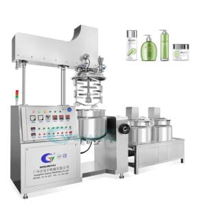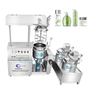 Recurso1. Esta máquina é adequada para diferentes materiais de viscosidade, A faixa de viscosidade do material é de 0 ~ 100.000 cps. 2. O pote principal da máquina pode ser sugado diretamente para o material com a bomba de vácuo. 3. Esta máquina pode ser equipada com função de aquecimento,função de resfriamento, função de vedação, limpeza online (conectado ao sistema de limpeza de CIP). 4. Moagem de partículas, emulsificação,mexendo, Os processos de homogeneização e dispersão podem ser concluídos em um tempo muito curto. 5. A homogeneização e mistura podem ser operadas de forma independente. A velocidade pode ser ajustada de acordo com o conversor de frequência. 6. Com tela de toque do PLC e controle de botões, Pode ser automatizado ou semi-automado.) Indústria de cosméticos: creme para o rosto, loção, batom, produtos de saúde, géis, etc..